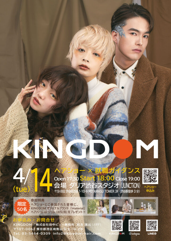 KINGDOMヘアショー&就職ガイダンスを 2026/4/14(火)に開催します